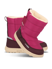 Lasten Ailo Preschool -lumibootsit kestävät pakkasta ja lunta teknisten materiaalien, erinomaisen pidon ja leikkisän kuvioinnin ansiosta. Vettähylkivä päällinen ja vedenpitävä kalvo muodostavat luotettavan kaksoissuojan kosteutta vastaan, ja fleecevuori pitää pienet jalat lämpiminä. Helppo pukea fiksun kiinnityksen ja käytännöllisen vetolenkin ansiosta. Kiila estää lumen pääsyn sisään ja heijastavat yksityiskohdat parantavat näkyvyyttä. Kevyet, toiminnalliset ja täysin vegaaniset.